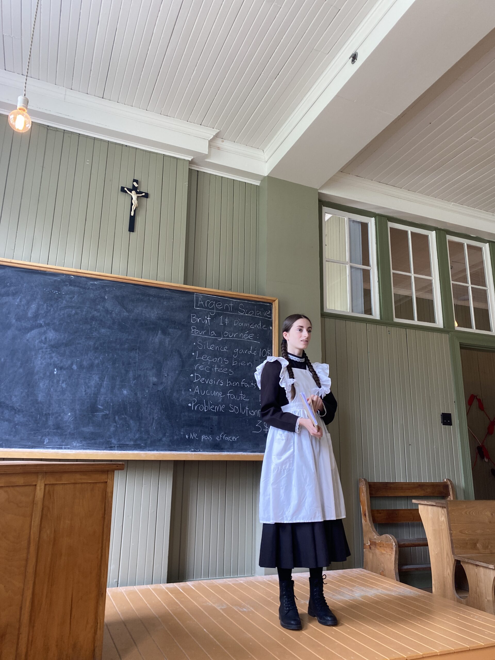 Il nous faut bien toute la journée pour faire tout le tour, découvrir l’école, le magasin général, la boucherie, le moulin, les différentes habitations, aller admirer les chutes d’en haut et profiter de la vue sur la vallée et le lac St-Jean au loin…