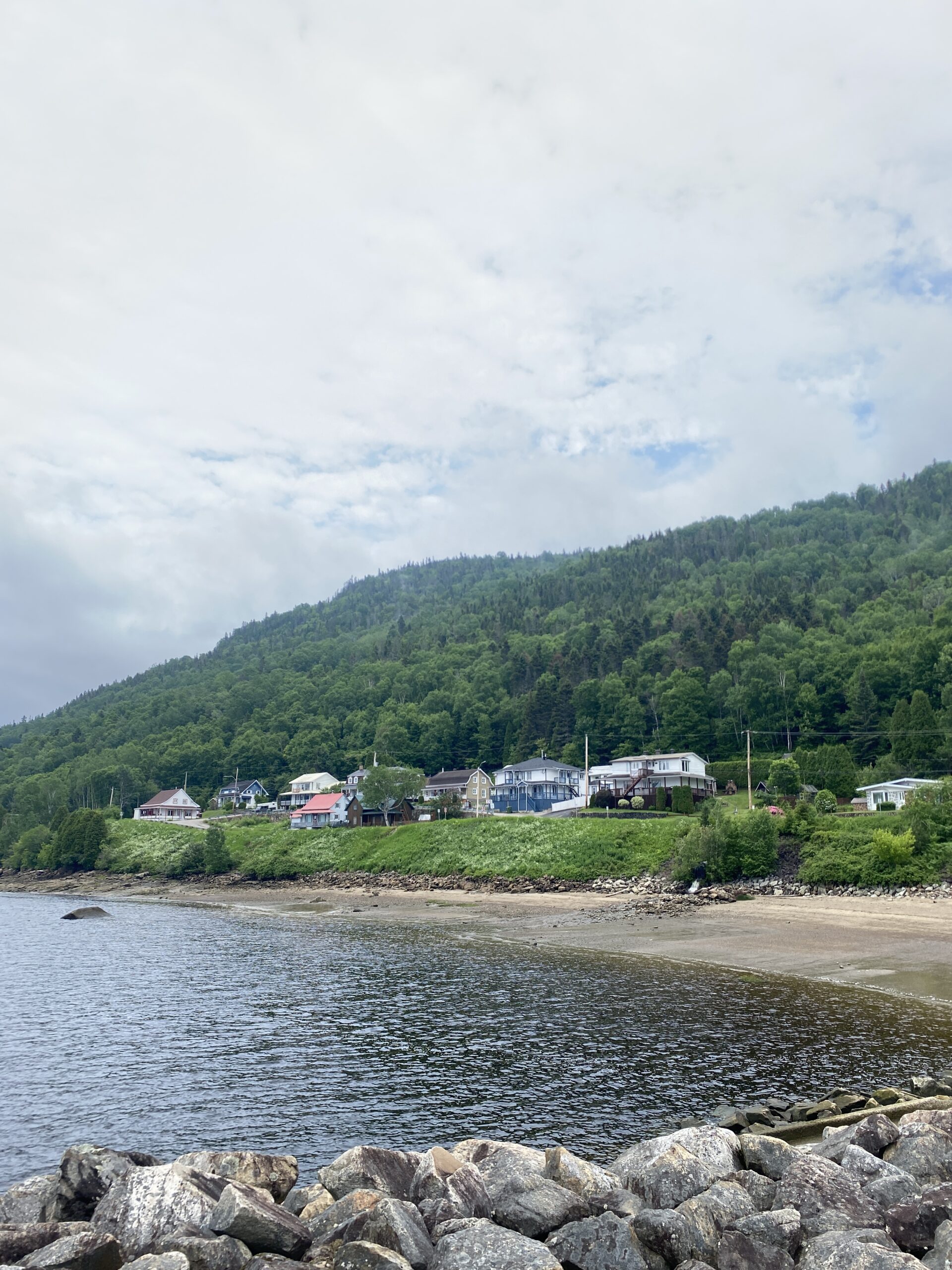 On poursuit la route vers Montréal et on fait de nombreux arrêts : Saint-Siméon, Port-au-Saumon, La Malbaie, Les Éboulements, Baie-Saint-Paul avec l’île aux Coudres au loin…