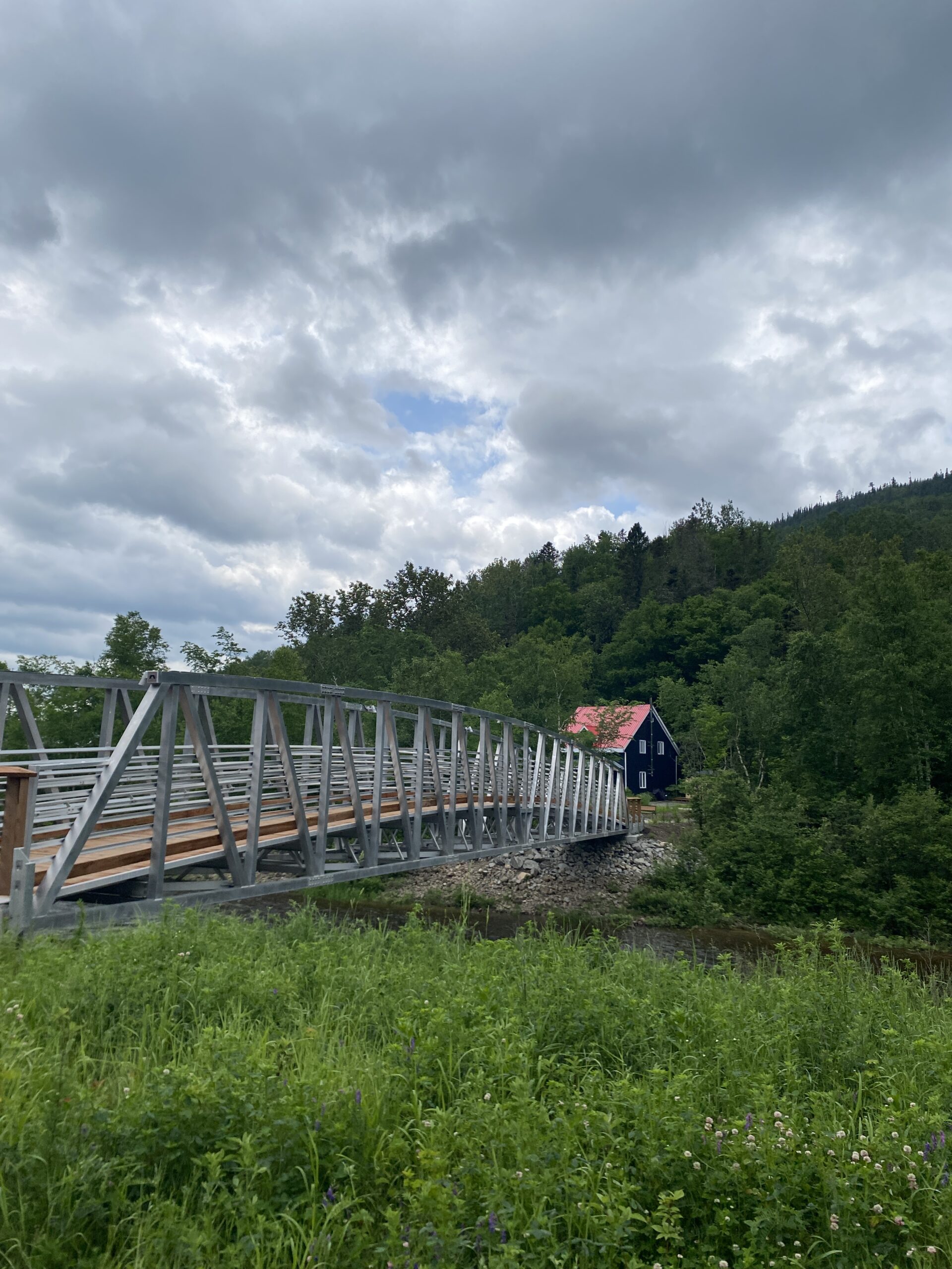 En chemin, pause pique-nique au parc des Bostonnais, près d’un joli pont couvert.  On fait une partie de fer à cheval, on se dégourdit les jambes et c’est reparti à travers des étendues de forêts à perte de vue pour rejoindre le Lac Saint-Jean.